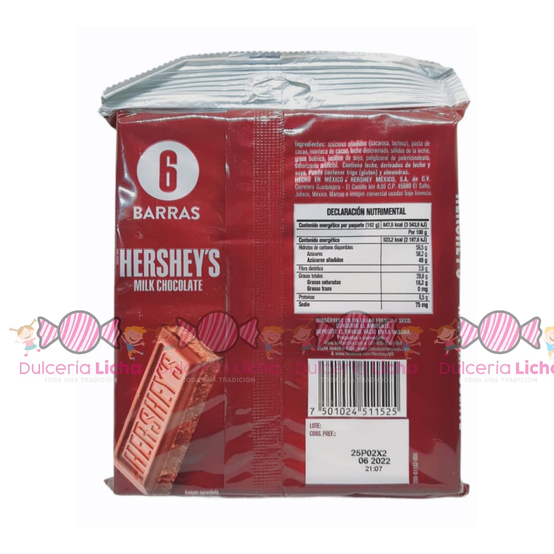 HERSHEY´S BARRA LECHE 6PZ